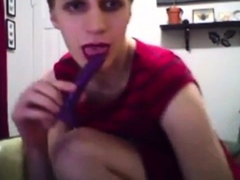 Crossdresser Femboy Rides Dildo and Jerks Off
